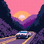 Prompt: DeLorean car driving through the winding mountain roads at sunset. Synthwave, hazy, vibrant.
